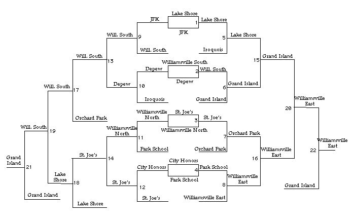South 165, JFK 125 Depew 160, Iroquois 75 Williamsville South 100, Depew 80 Grand Island 100, Lake Shore 80 |