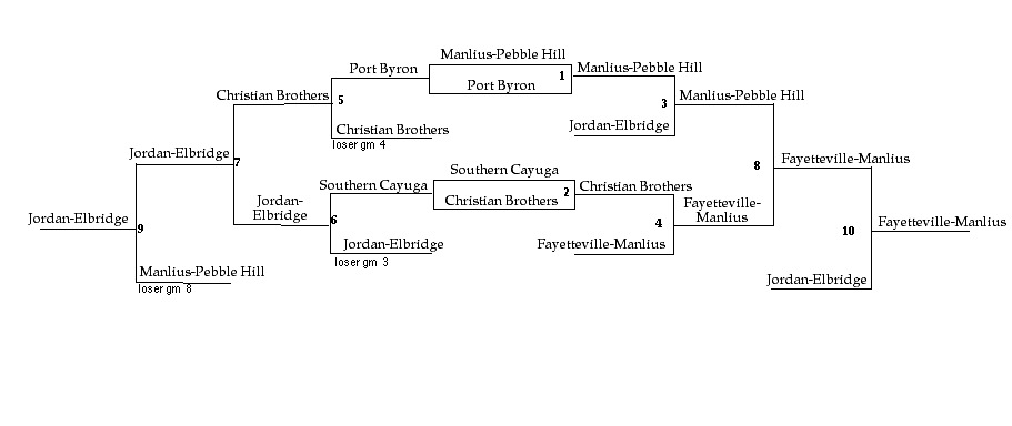 235, Port Byron 80 Christian Brothers 275, Southern Cayuga 65 Manlius-Pebble Hill 180, Jordan-Elbridge 40 Fayetteville-Manlius 135, Christian Brothers 125 (O.T.) Christian Brothers 215, Port Byron 25 |